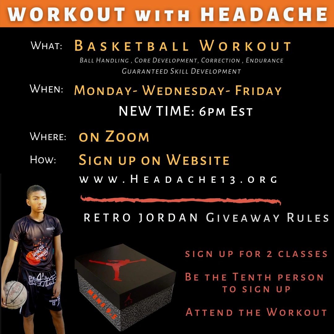 To win the Free 9.5 Retro Jordan, you must sign up for the One Week Session or Two classes/session in the same week. If you are part of the headache workout group you must sign up for a month session. The Tenth person to sign up and attend both sessions will receive these dope Shoes free of charge!!!